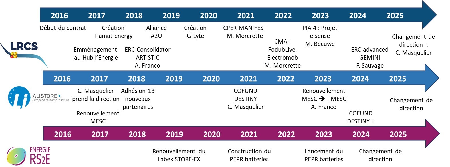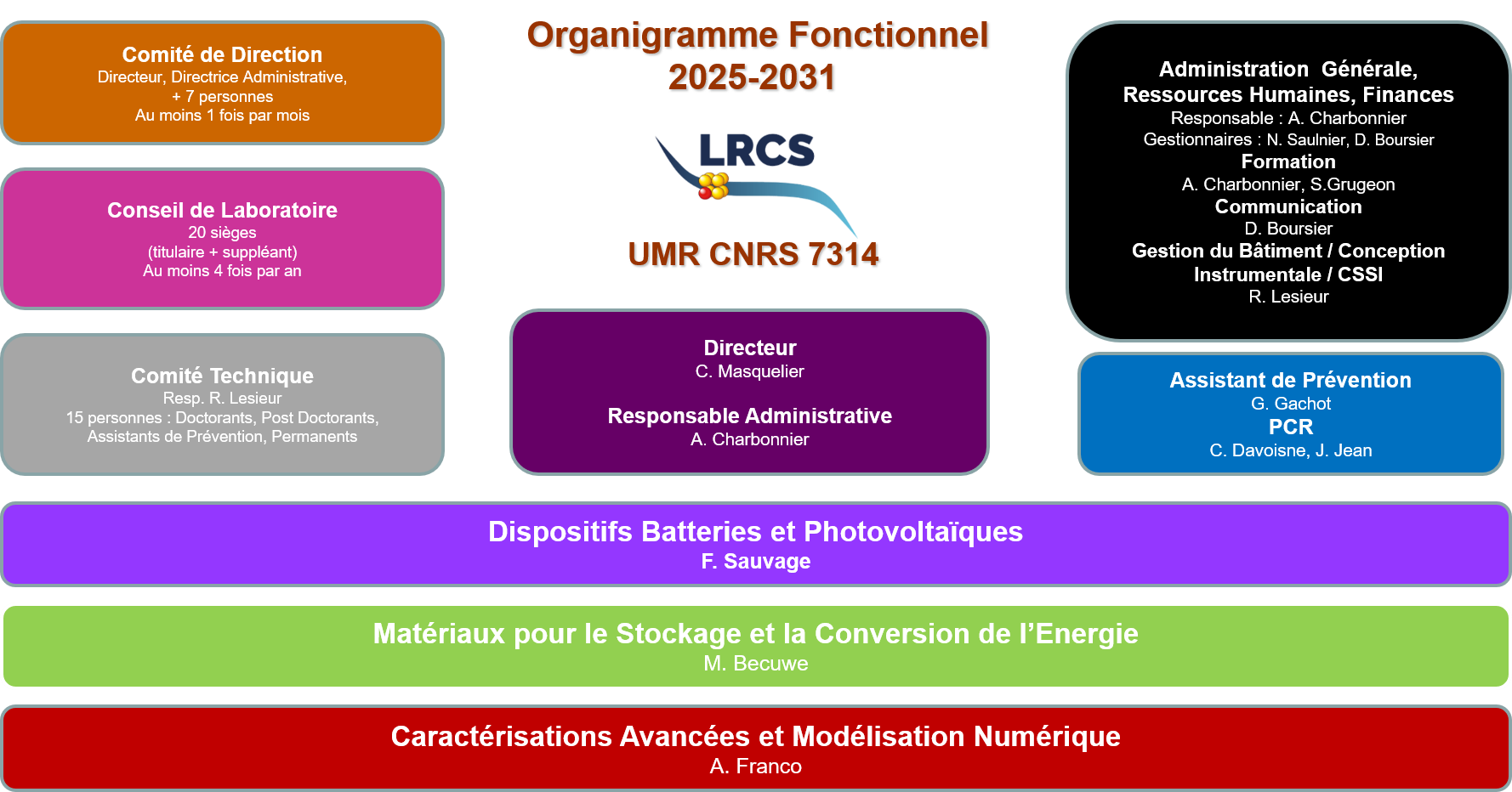 The LRCS is now over 55 years old. Created in 1968 by Professor Michel FIGLARZ, a renowned specialist in the synthesis of new materials in solution or by ?soft chemistry 1?, the LRCS, with the arrival of Professor Jean-Marie TARASCON in 1994, resolutely turned its attention to materials for energy storage and conversion. Since 2000, the LRCS has been a joint research unit of the CNRS and the Université de Picardie Jules Verne in Amiens (UMR 7314), and has been behind the creation and management of the ALISTORE (since 2004) and RS2E (since 2013) networks. Since January 2008, the LRCS has been directed by Mathieu MORCRETTE, who was succeeded by Christian MASQUELIER on January 1, 2025. Since February 2017, the LRCS has been housed in a new 5500 m2 building called the Energy HUB, at 15 rue Baudelocque in Amiens.