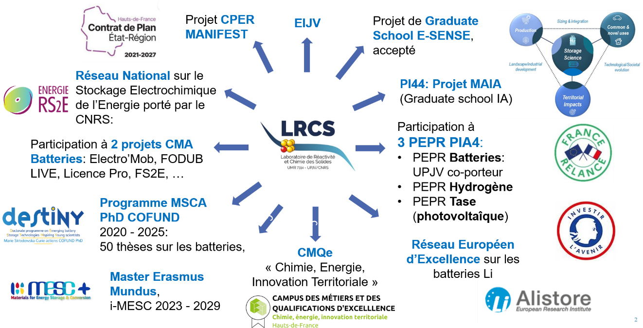 Around 140 people work in the Energy HUB, closely linked to LRCS research activities, including 4 companies housed in the HUB: TIAMAT, G-Lyte, A2MAC1, CRYSTAL ENERGY. It is important to emphasize that our scientific activity is largely carried out in a network (ALISTORE / DESTINY, RS2E) and that a significant number of PhD students are affiliated to / co-directed by 2 laboratories.